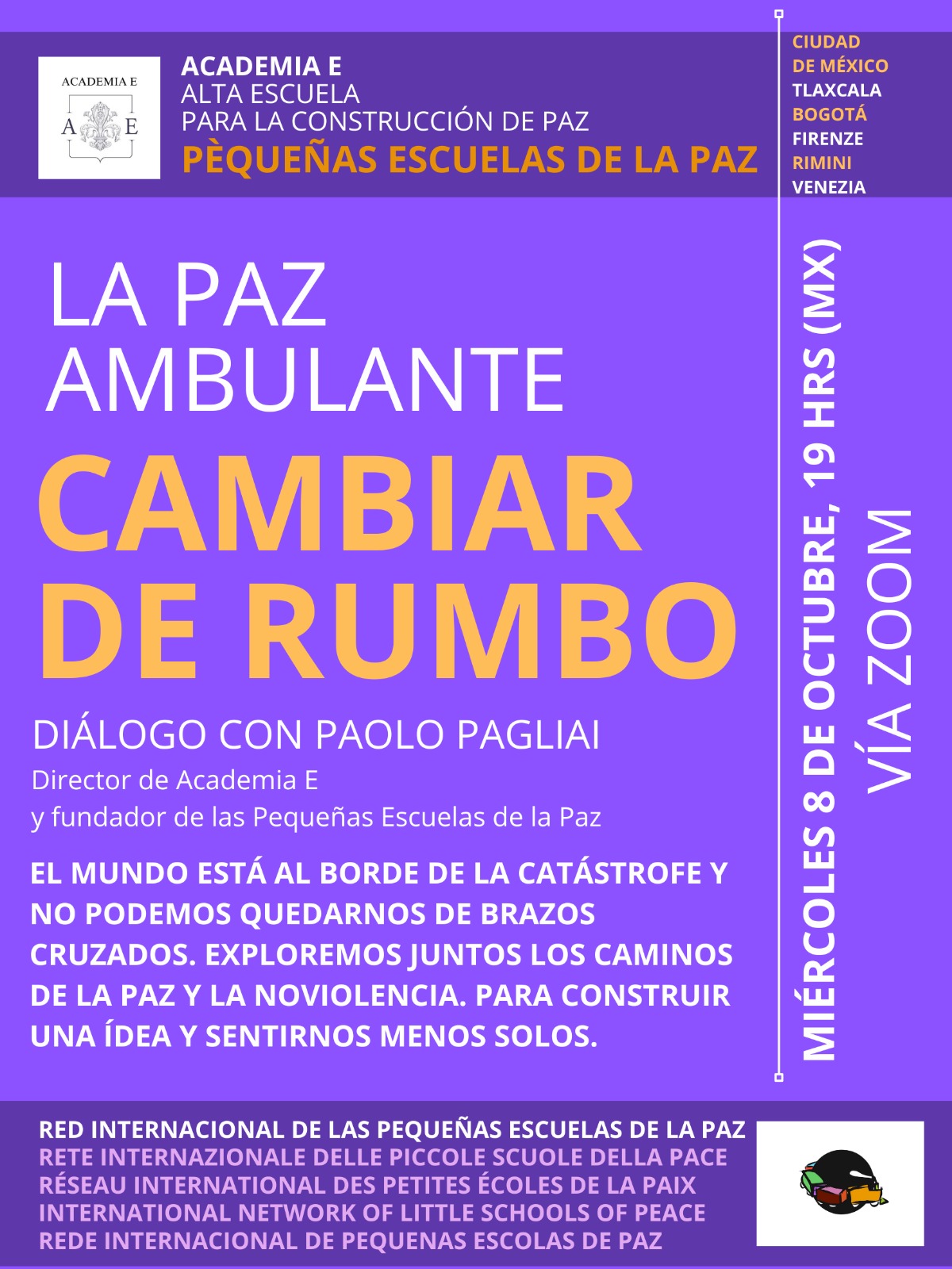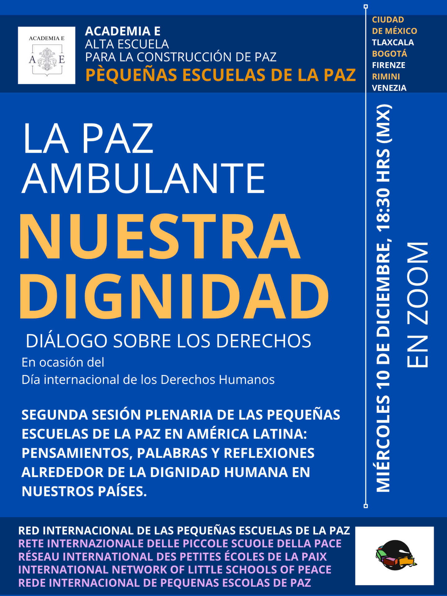 En el marco de las actividades de las Pequeñas Escuelas de la Paz en América Latina, el próximo miércoles 8 de octubre, a las 19 horas (en México), nos reuniremos en Zoom para reflexionar alrededor de nuestro papel como personas en la Construcción de Paz. La reunión es organizada por nuestras sedes de Bogotá, Tlaxcala y Ciudad de México.
